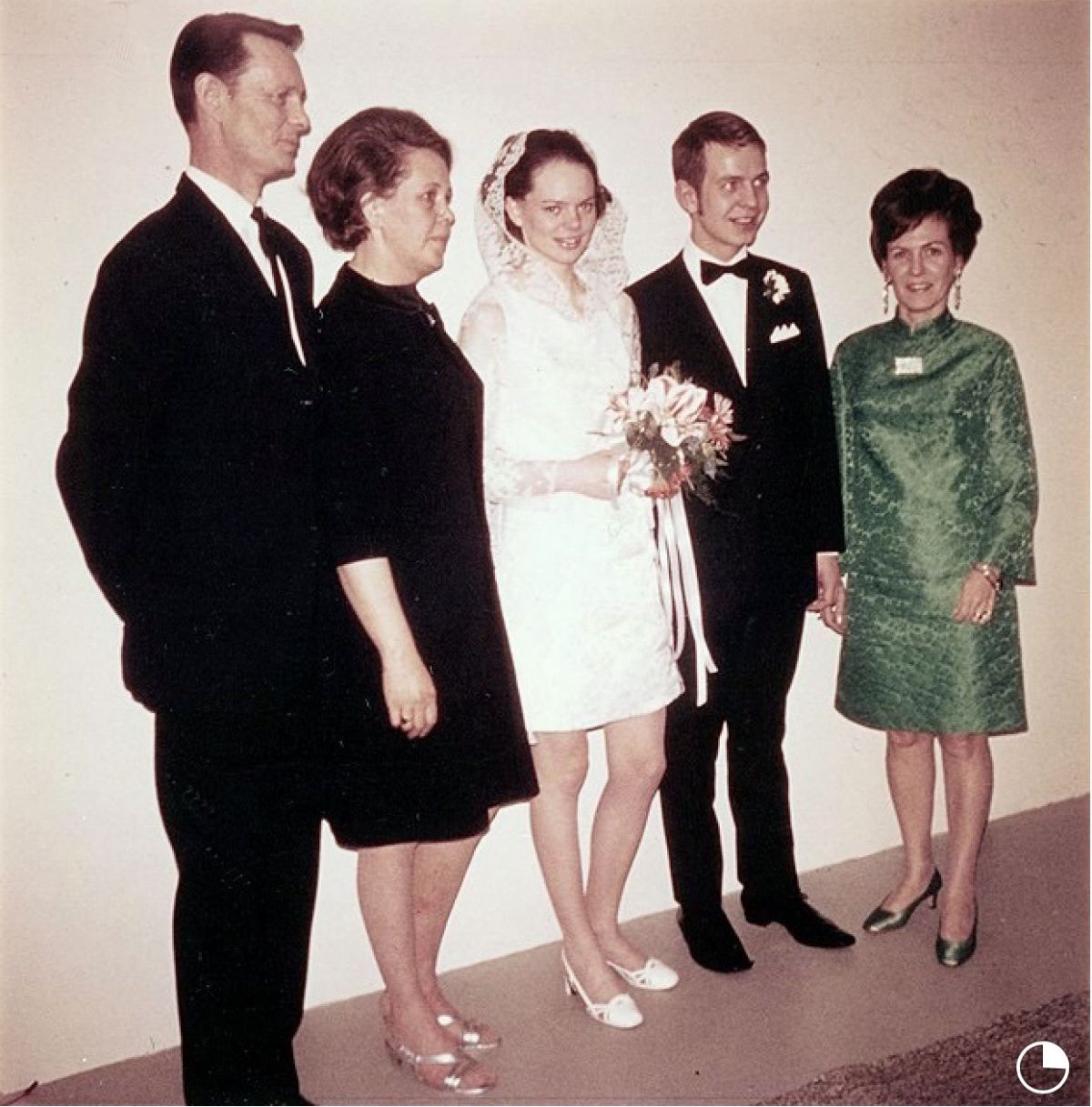On this drab December day, heavy patches of snow shrink to reveal brown grass and gray pavement. I look away from the window and contemplate a photo of my oldest brother Issi’s wedding in Iceland in 1969. The bride’s parents stand in dark clothes with serious faces angled slightly down and away from the camera. My new sister in law, Arndis, wears a Cheshire grin and a lacy white dress hemmed well above her knees. My brother’s face is eager and thoughtful, hair cut short around his broad forehead. The buttons of his dark suit nearly burst with contained energy. My mother alone wears color—an emerald green dress and matching satin shoes. Her brunette hair is swirled into a luxurious bouffant, and a half smile plays on her lips. Tense beauty and unpredictable fire shine from this photo.